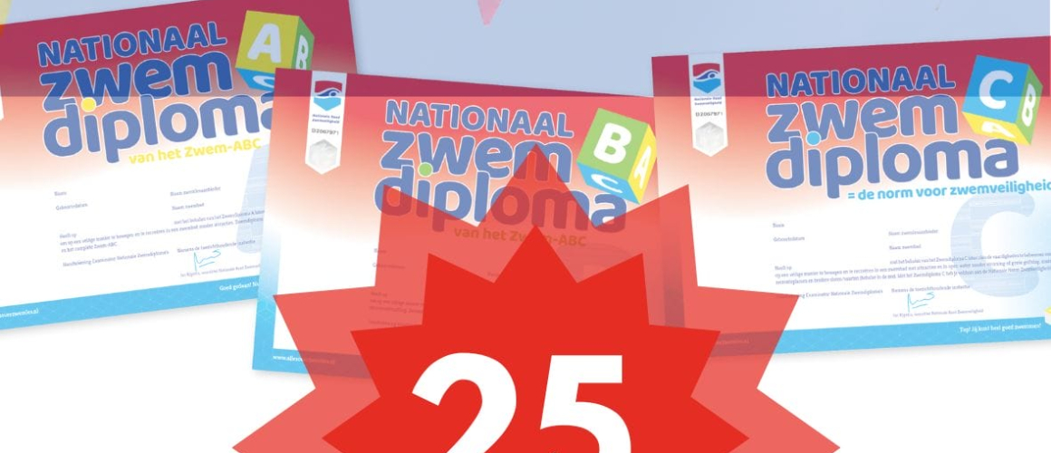 25 jaar geleden, 1 oktober 1998 was het zo ver. De eerste zwemdiploma’s van het Zwem-ABC werden uitgereikt. Voorafgaand aan die eerste introductie van het Zwem-ABC hebben veel medewerkers uit de zwembadbranche, samen met de voorloper van de Nationale Raad Zwemveiligheid, de Nationale Raad Zwemdiploma’s (NRZ), bergen werk verzet. Ik was één van hen.