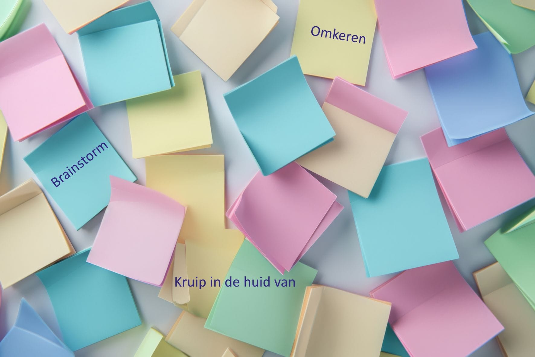 Er zijn altijd oplossingen die voor de hand liggen, maar het leukste is om ‘gekke en onverwachte’ ideeën te verzinnen. We gaan dan brainstormen en gebruiken daarvoor een aantal creatieve technieken. Deze technieken zorgen ervoor dat je uit automatische denkpatronen wordt gehaald.