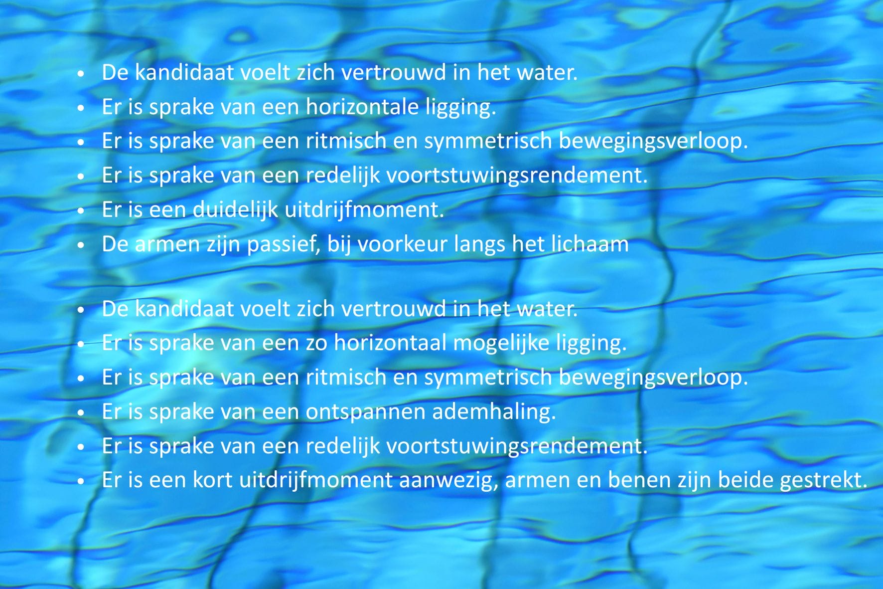 Is dit ‘impliciet leren proof’? Ik denk het wel. Er is ruimte in de normering, dus ook ruimte voor de individuele uitvoering van kinderen (en volwassenen). Zoals gezegd, er staat niets over voeten beschreven. Dat wordt dus overgelaten aan het kind zelf. Natuurlijk is het fijn als ze met de voeten tegen het water kunnen duwen en daarom beter vooruitgaan. Dus die tips kun je tijdens het leerproces prima geven. Maar in de uiteindelijke toetsing is het geen noodzaak. Als er maar stuwing is! En die kun je ook creëren met je onderbeen of evt. bovenbeen.